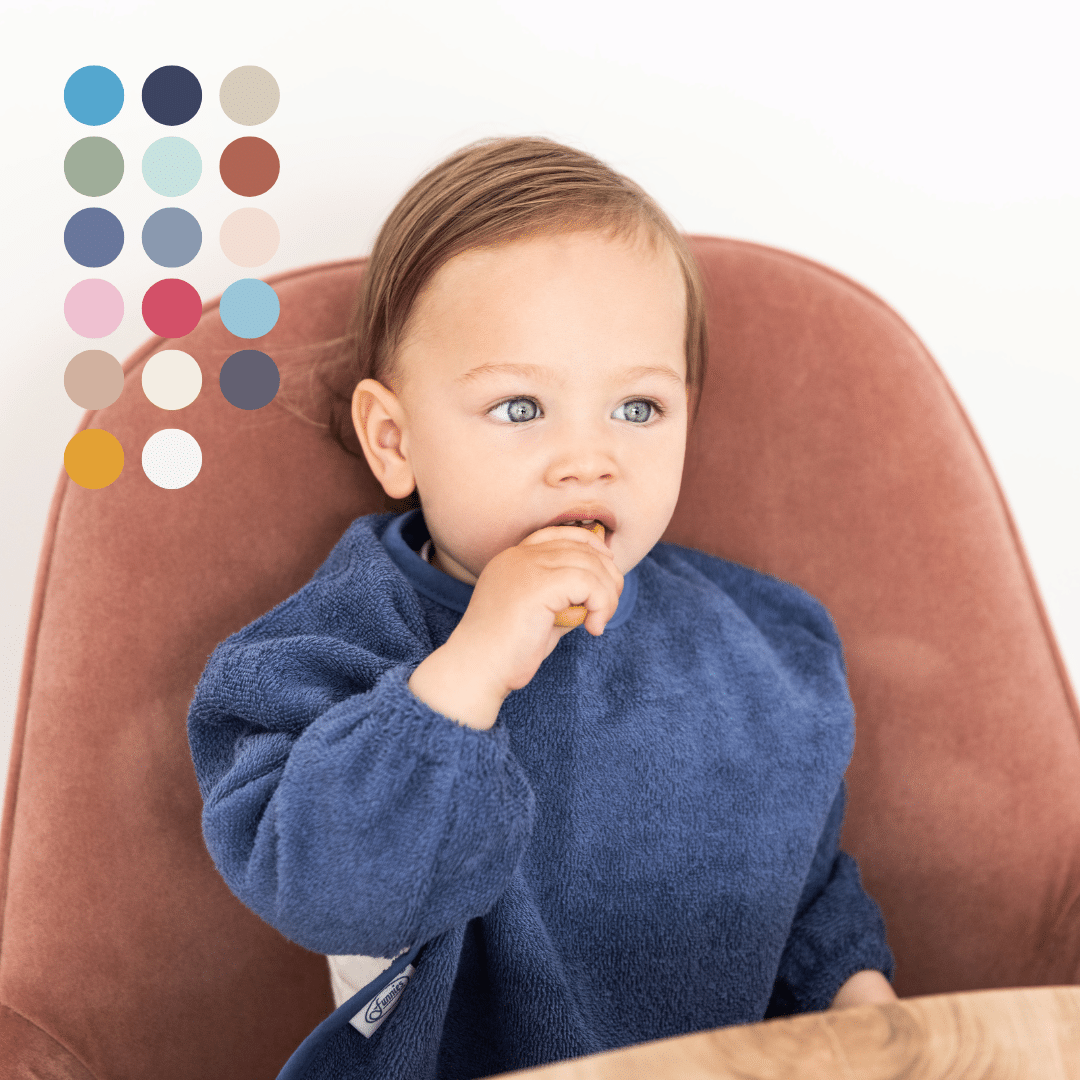 Slabber Met Mouw Funnies Uni Stone Green De handige slab met lange mouwen is van het merk Funnies. De slab heeft een mooie uni kleur en is gemaakt van 100% zuiver katoen en badstof. De slab is goed absorberend en kan op 40 graden gewassen worden. Was de slabber wel eerst voordat je ze gaat gebruiken. Na enkele wasbeurten is de absorberende werking van de badstof optimaal.  Verkrijgbaar in meerdere mooie trendy kleuren.  Slabber Met Mouw Uni 14806 Stone Green
